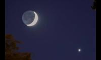 在月亮旁邊有一顆很亮的星星(名字叫做金星)