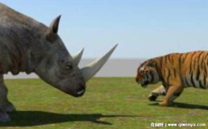 犀牛雖然體型不像大象那么大,但犀牛的戰斗力也是不容小覷的,犀牛的角十分鋒利,咬合力也很強,即使老虎能夠躲過犀牛的尖角,但在和犀牛相互撕咬的時候,老虎咬不破犀牛的皮,犀牛則能夠直接把老虎咬的痛不欲生。