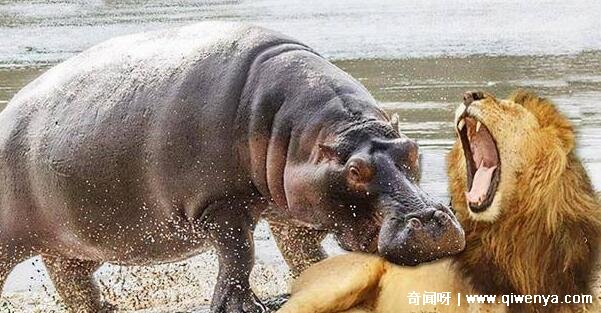 河馬雖然是食草動物,但是在生命受到威脅的時候也會吃肉的,如果獅子老虎敢惹河馬,那么河馬將會用它們超強的咬合力直接和獅子老虎搏命,雖然獅子老虎非常敏捷,但它們也只能失誤一次,一旦被河馬咬住了,基本上就是半身不遂了,河馬雖然不會吃獅子老虎,但也會讓獅子老虎喪失戰斗力。