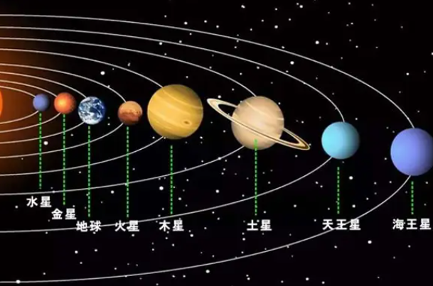 八大行星就是指的太陽系中的八大行星,按照由近到遠的距離排序的話是:火星、木星、土星、天王星、海王星;而按從大到小來排序的話就是:木星、土星、天王星、海王星、地球、金星、火星、水星。