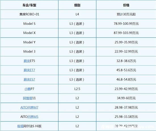 1、集度ROBO-01 L4:30萬元起