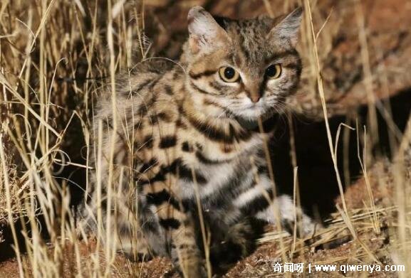 黑足貓單看外表非常可愛,跟普通貓咪沒什么兩樣,而且眼睛很大,看起來可愛極了。但是黑足貓攻擊性很強,黑足貓生存地的許多人都認為黑足貓能夠撂倒一頭成年的長頸鹿,由此可見黑足貓的戰斗力有多強。