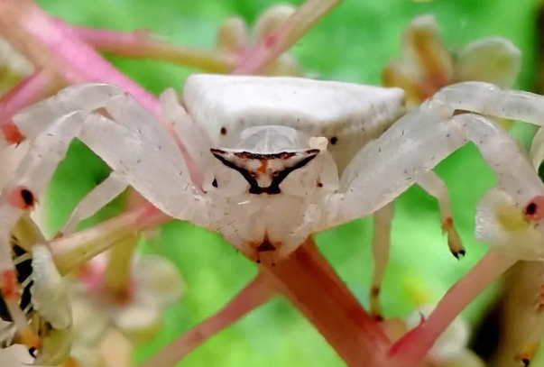 蟹蛛為蜘蛛目蟹蛛科動物,分布廣泛,在全球有170屬,2000余種,這是一種喜歡藏在花瓣中捕獵的蜘蛛,對人類沒有危險,也沒有毒針和尖刺,不過許多人也對這種特殊的蜘蛛十分害怕。