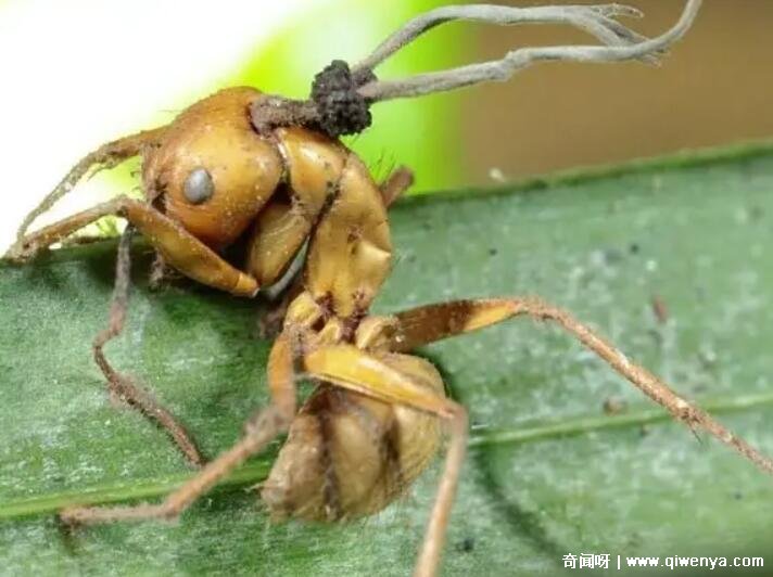 3、雖然對我們人類來說,這個偏側蛇蟲草菌完全是沒有威脅的,因為偏側蛇蟲草菌不會感染到人身上。但是對于螞蟻來說,這卻是非常恐怖的,畢竟一旦被偏側蛇蟲草菌感染上,那么就相當于給螞蟻判了死刑,螞蟻只能任由其擺布直到死去。奇聞呀 wWw.qIWenYa.CoM
