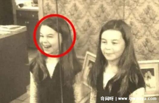 本來這張照片非常正常,但是仔細觀察就能發現,這張照片里鏡子中的小女孩非常恐怖,她和正常的小女孩表情不一樣,在大笑,而且越看越覺得這個笑容十分詭異,像是在謀劃什么邪惡的事情一樣。